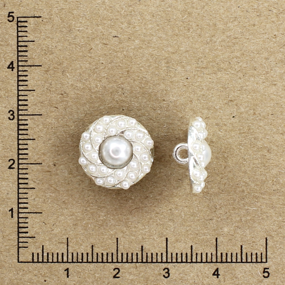 Название: Пуговица металл 25QW7006P 24L, белый перламутр / серебро
