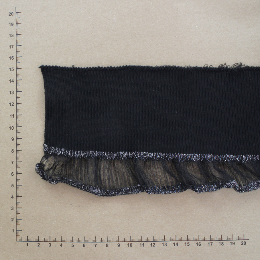 Название: Эласт. трик. тесьма 95% ПЭ, 5% эластан 25QW1017A 9*90см, цв.чёрный/ серебро